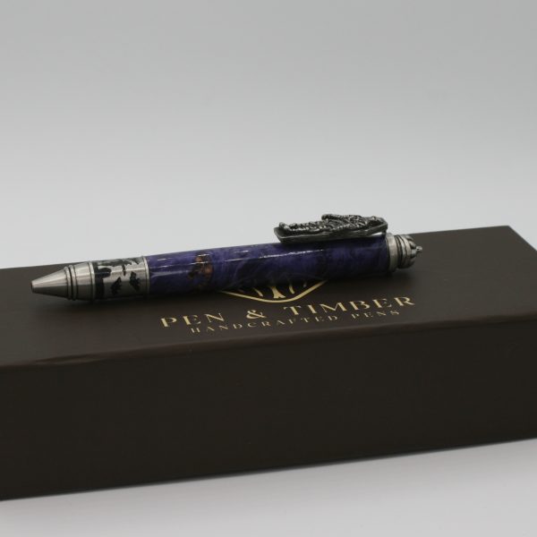Haunted Halloween Twist Pen in Antique Pewter with Stabilized Box Elder – A Spooky, Stylish Writing Treasure
