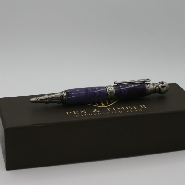 Skull Antique Pewter Twist Pen with Stabilized Box Elder – A Fierce, Gothic Writing Statement