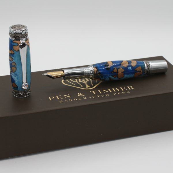 Majestic Sapphire Blue Cholla Fountain Pen | Handcrafted Luxury Fountain Pen with Crystal Accents